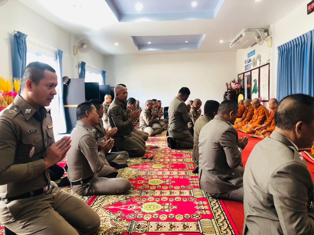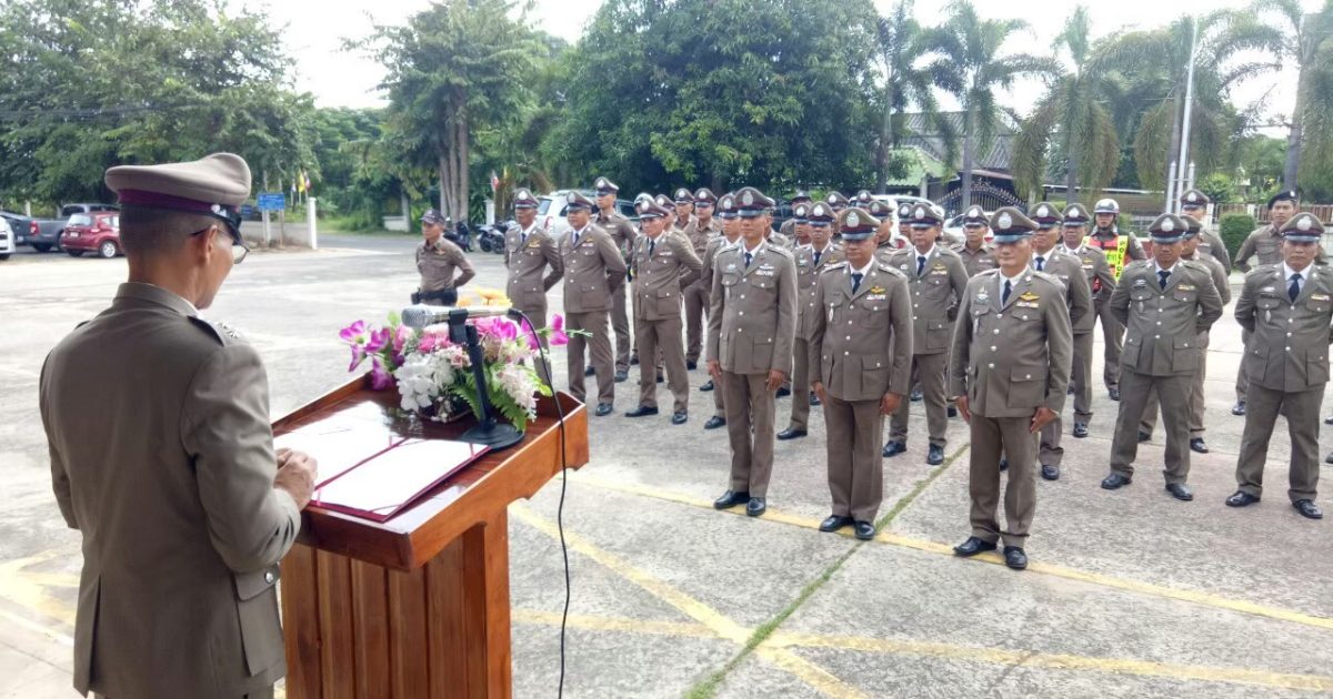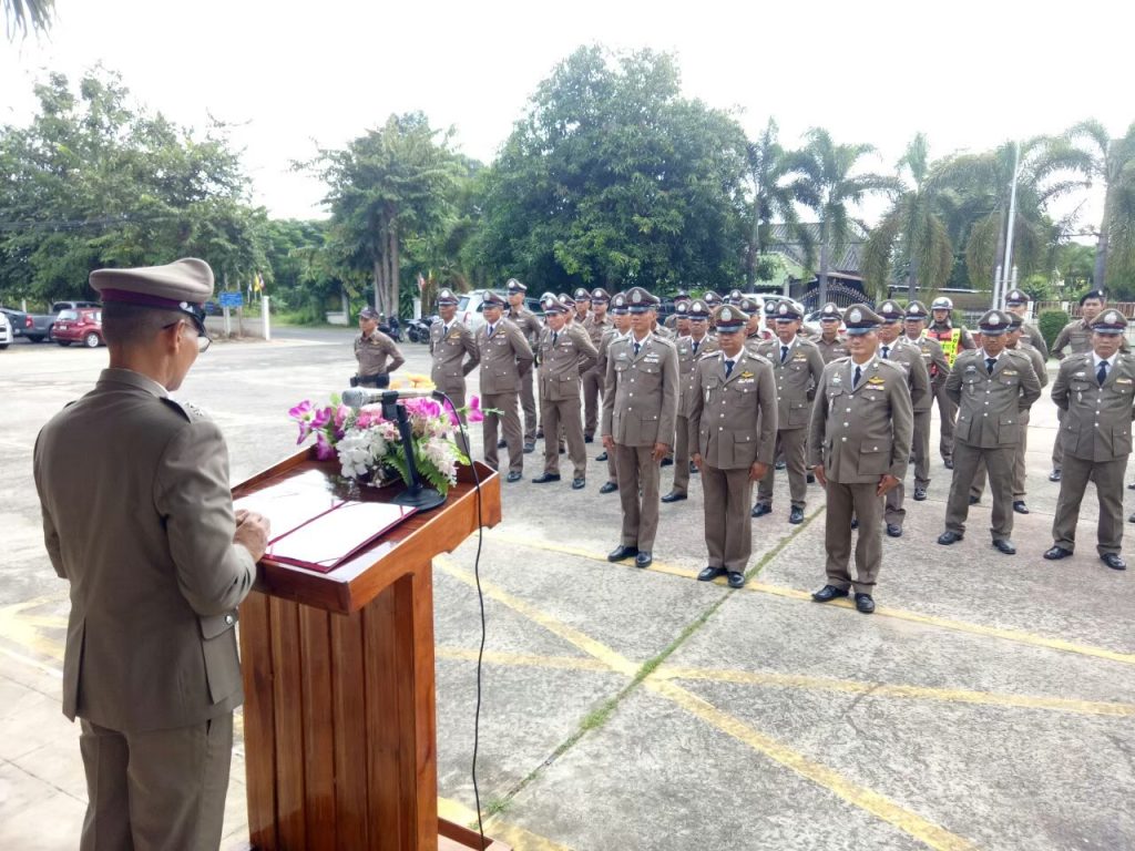 ตำรวจในสังกัด เข้าแถวเคารพธงชาติ สวดมนต์ไหว้พระ ท่องอุดมคติตำรวจ และอ่านสารจาก ผบ.ตร. และ