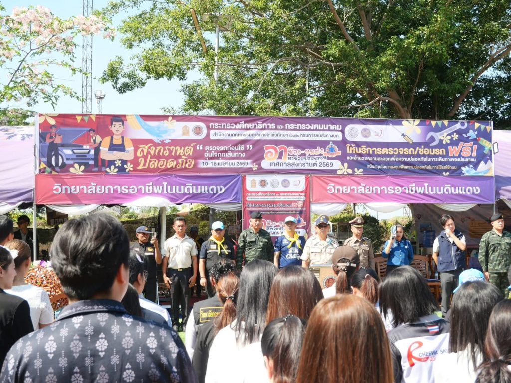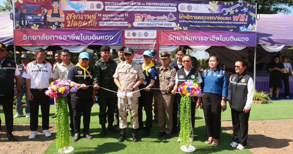 วันที่ 10 เม.ย. 2569 เวลา 09.00 น. พ.ต.อ.ทศพล ณ อุบล ผกก.สภ.โนนดินแดง พ.ต.ท.มนัส ถุนนอก สวป.ฯ พร้อมข้าราชการตำรวจในปกครองและจิตอาสา หัวหน้าส่วนราชการ ผู้บริหารองค์กรปกครองส่วนท้องถิ่น เจ้าหน้าที่ตำรวจ กำนันทุกตำบล ผู้ใหญ่บ้าน ท้องถิ่น ชุมชน อาสาสมัครกู้ภัยฯ เข้าร่วมกิจกรรม เข้าร่วมพิธีเปิดศูนย์ปฏิบัติการป้องกันและลดอุบัติเหตุทางถนน ช่วงเทศกาลสงกรานต์ พ.ศ. 2569 โดยมีนายศิริมงคลรัตน์ วงศ์วรรณา นายอำเภอโนนดินแดง /ผู้อำนวยการศูนย์ปฏิบัติการความปลอดภัยทางถนนอำเภอโนนดินแดงเป็นประธานในพิธีเปิด จุดตรวจหลัก/จุดบริการประชาชน ของศูนย์ปฏิบัติการความปลอดภัยทางถนนอำเภอโนนดินแดง ช่วงเทศกาสงกรานต์ พ.ศ. 2569 อำเภอโนนดินแดงพจน์ จังหวัดบุรีรัมย์ ณ จุดตรวจ/จุดบริการประชาชน บริเวณหน้าอนุสาวรีย์เราสู้ อำเภอโนนดินแดง จังหวัดบุรีรัมย์