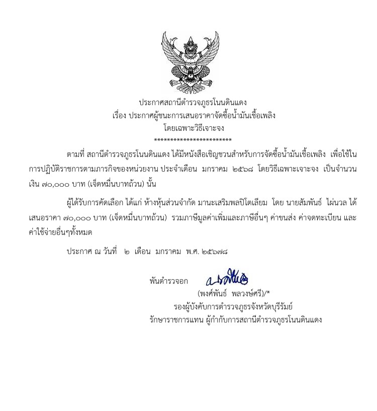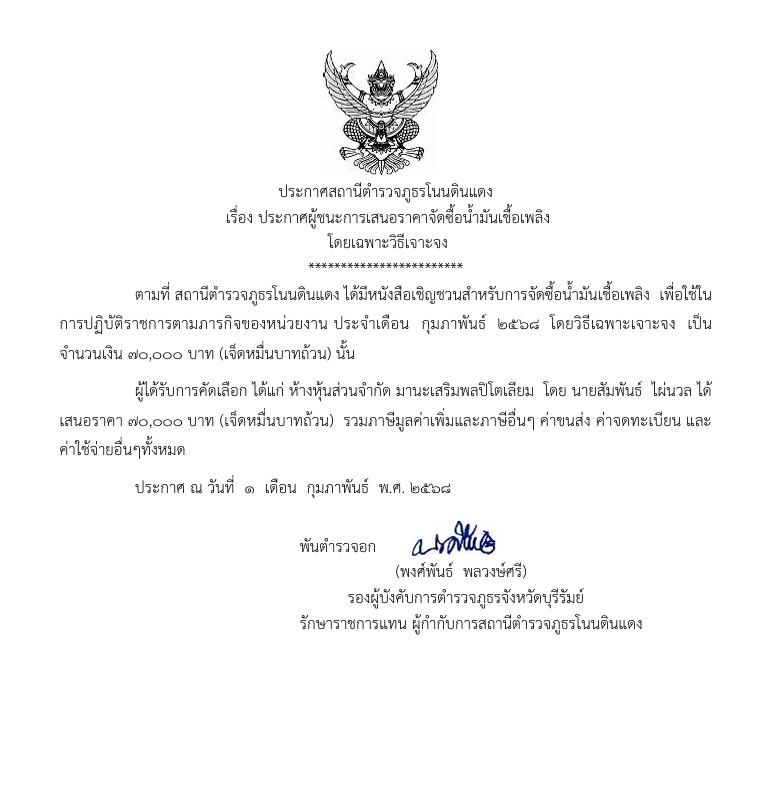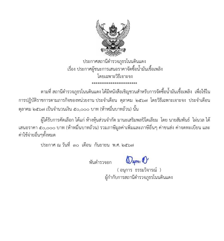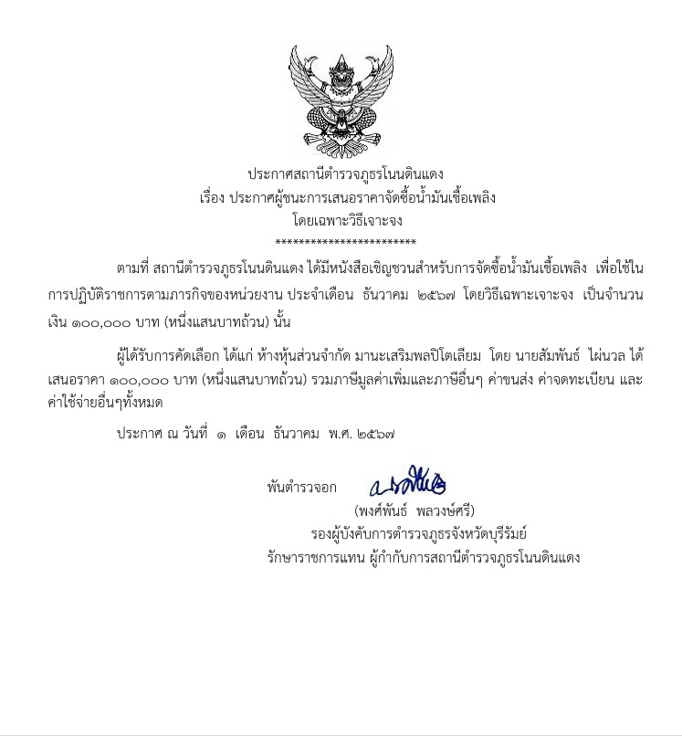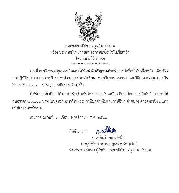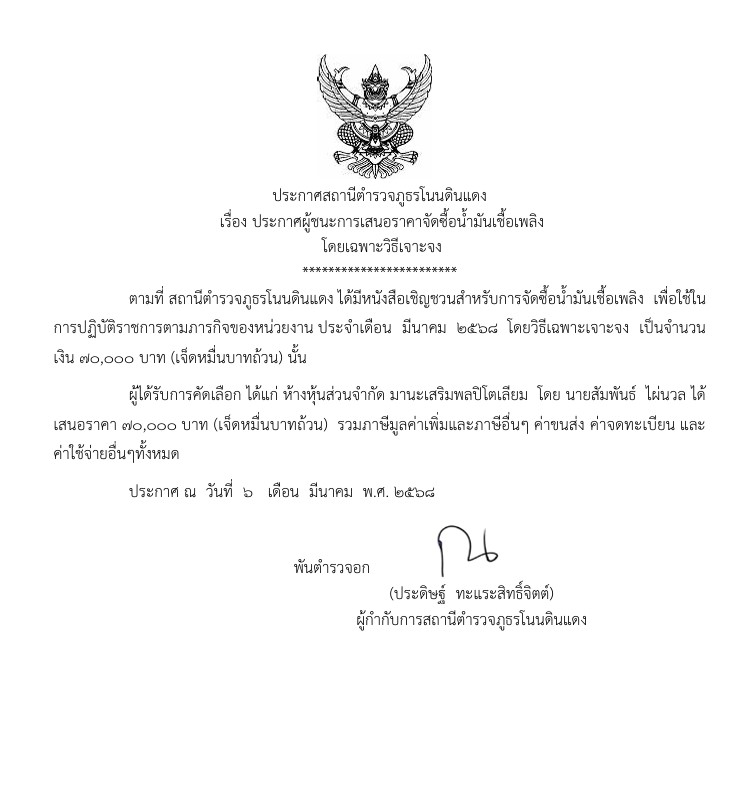 -ประกาศต่าง ๆ เกี่ยวกับการจัดชื่อจ้าง ของสถานีตำรวจ ประจำปีงบประมามาณ พ.ศ. 2568 ที่จะต้องดำเนินการตามพระราชบัญญัติการจัดซื้อจัดจ้างและการบริหารพัสดุภาครัฐ พ.ศ.ศ. 2560ได้แก่ ประกาศแผนการจัดซื้อจัดจ้าง ประกาศเชิญชวน ประกาศผลการจัดซื้อจัดจ้างเป็นต้น เผยแพร่เป็นประจำทุกครั้ง ที่มีการจัดซื้อจัดจ้าง